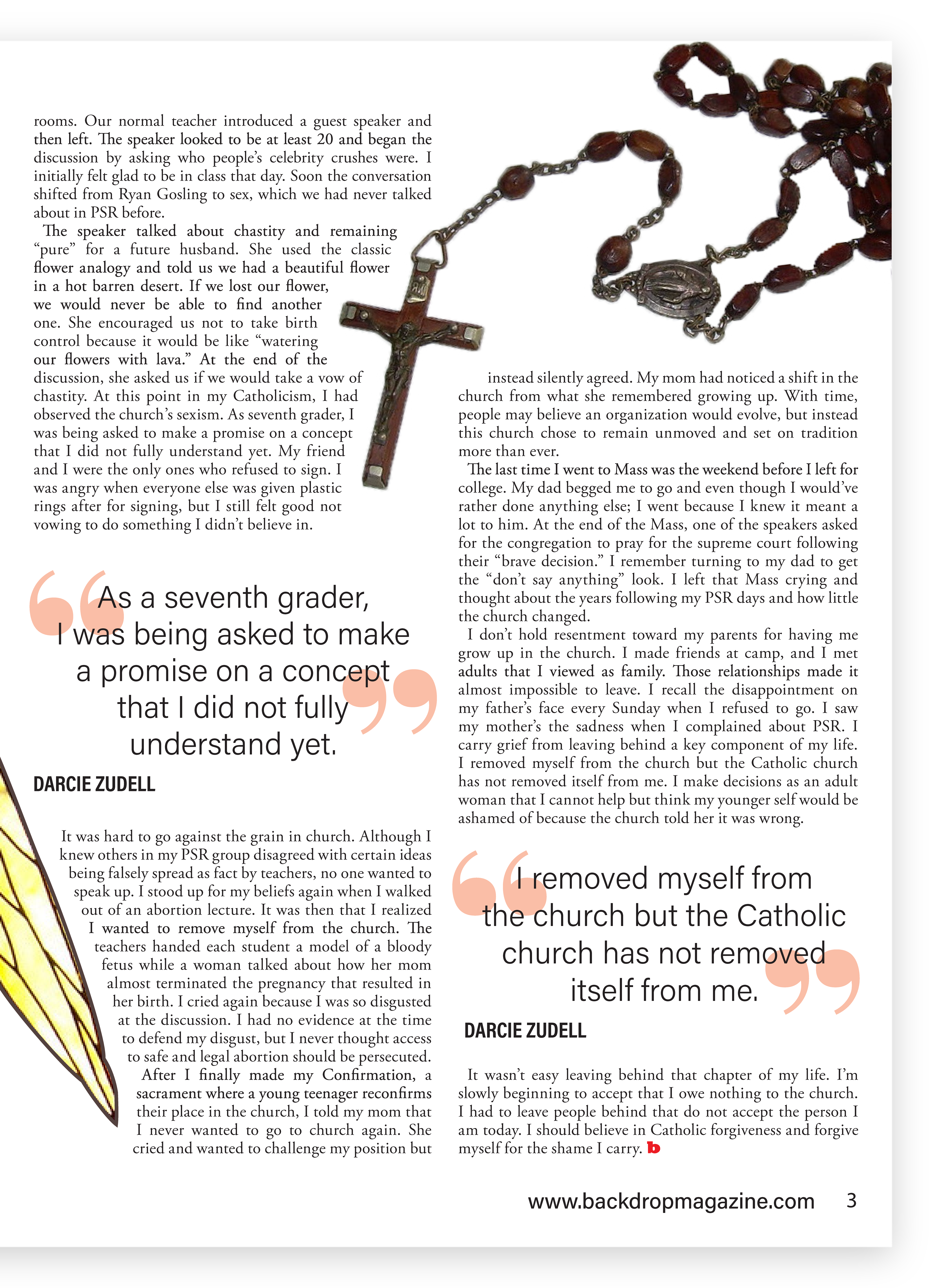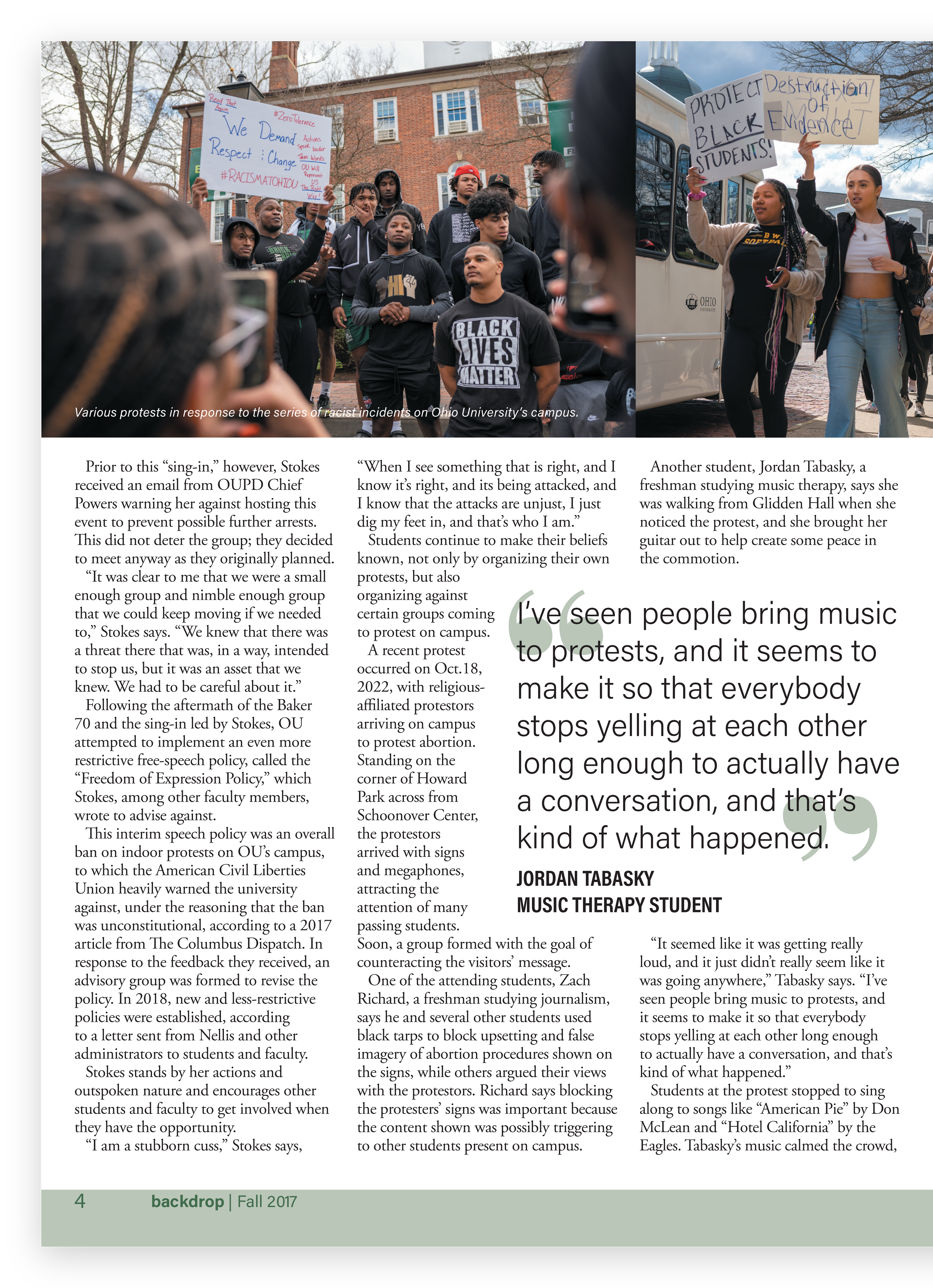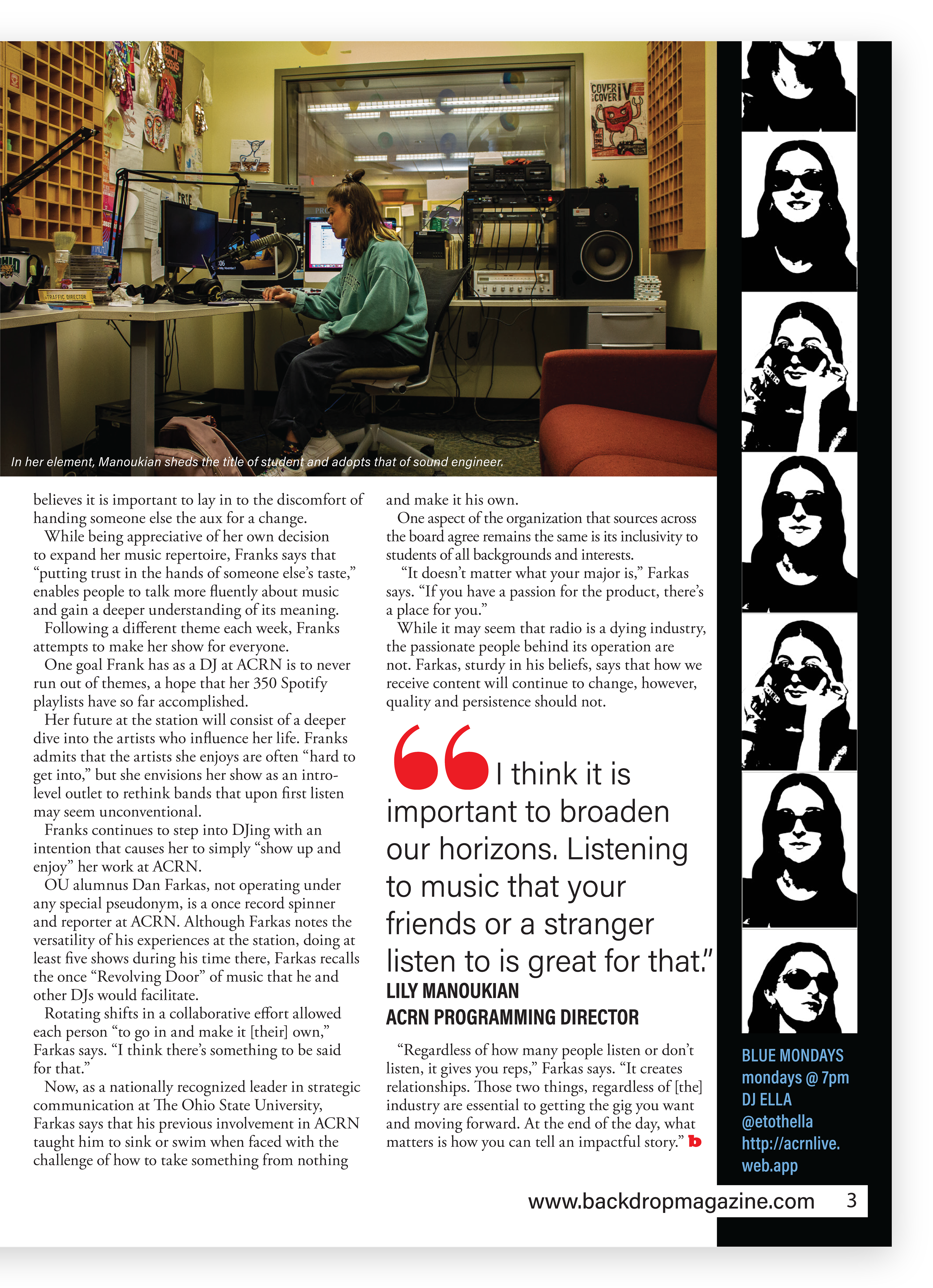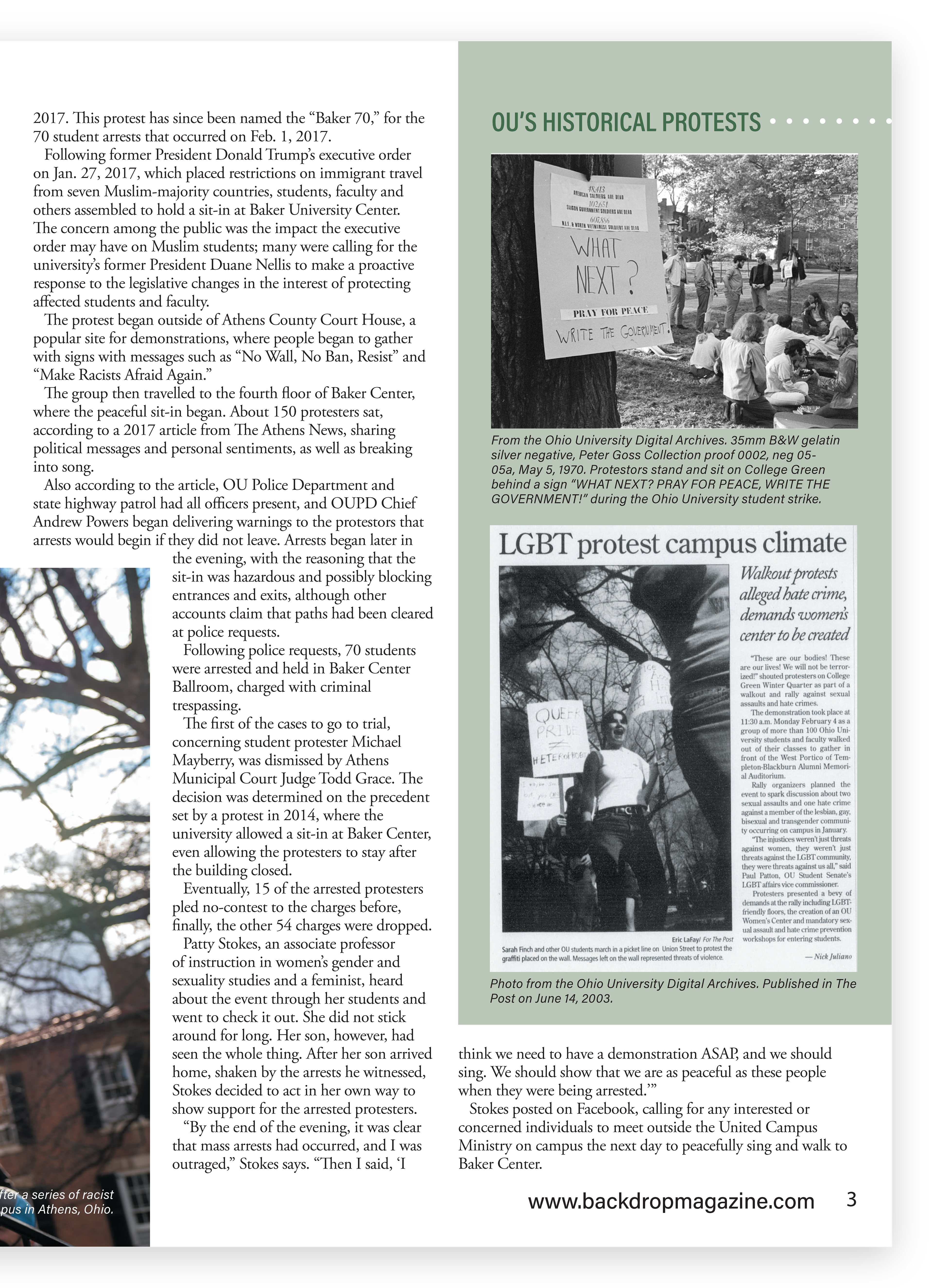 Backdrop Magazine is a student publication at Ohio University that strives to disseminate current happenings on campus that most interest the student body. The staff consists of student journalists, photographers, and publication designers.