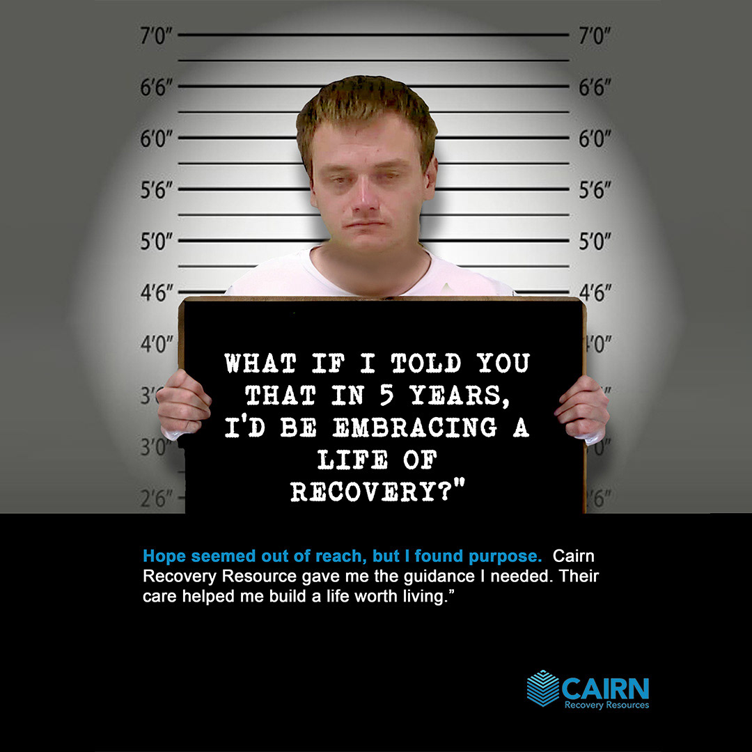 I created the billboard using a photo provided by the client. The man is Cairn's housing director and former rehabilitation patient.