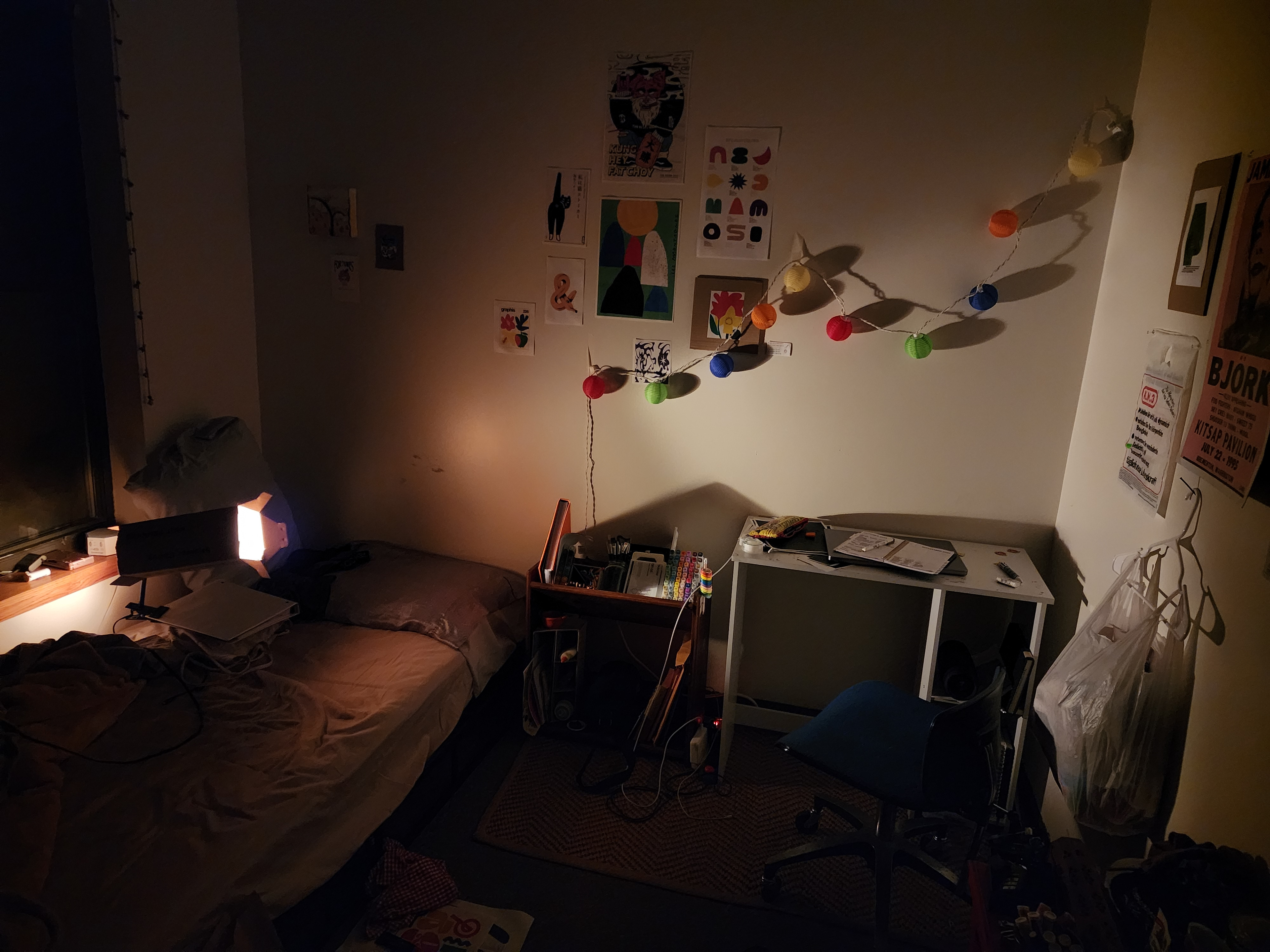 A focused light source projected on the right wall, where I took the photos.