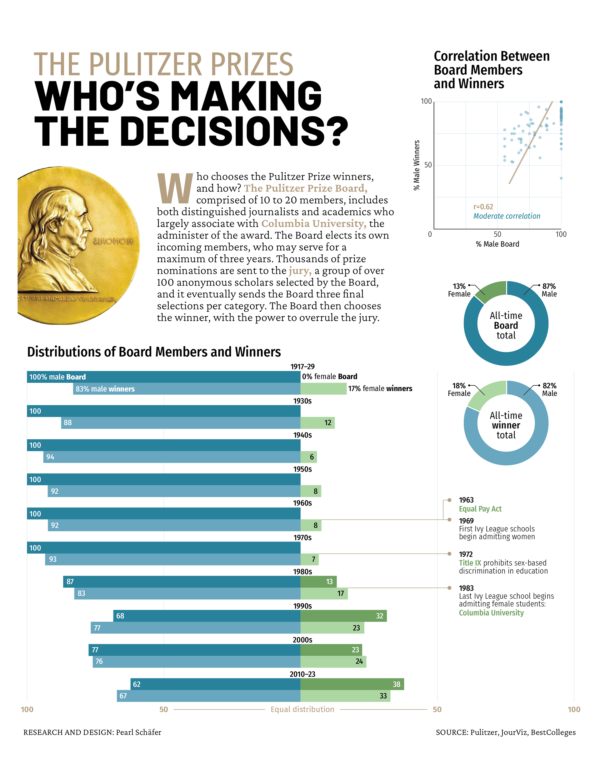 Create an infographic relating to the Pulitzer Prize. The infographic must have at least two data sets and adhere to standardized typefaces and colors.
