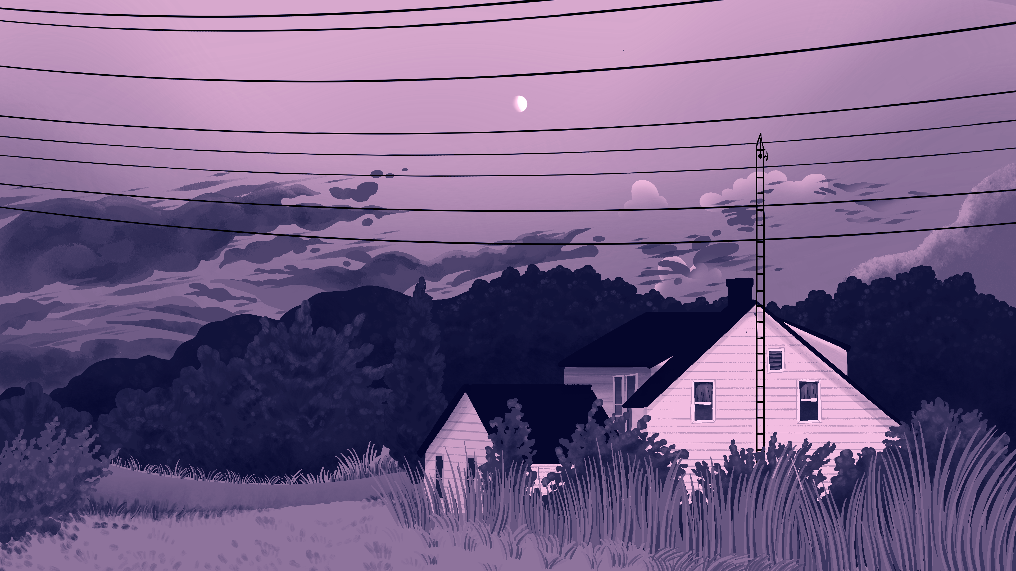 The piece uses a cross-shaped compositional technique. By rendering the sky with more interpretive forms and implementing a cool-toned gradient map, I implement an additional overtone of dreaminess or wistfulness.