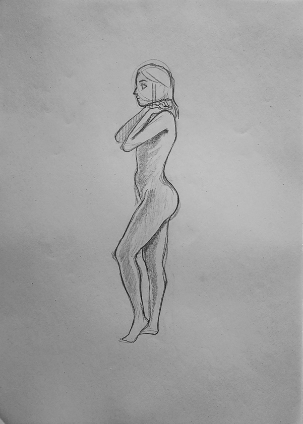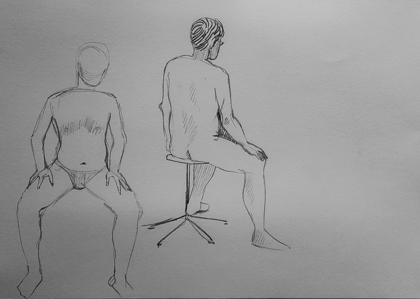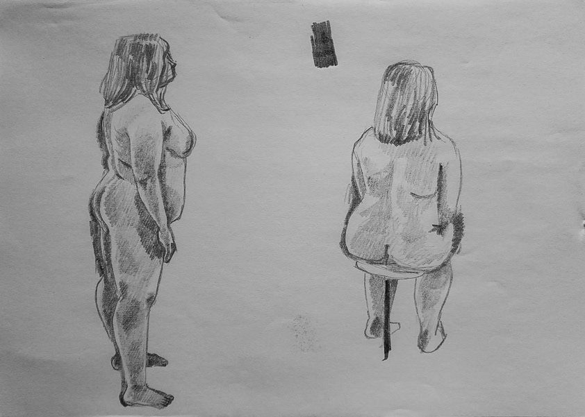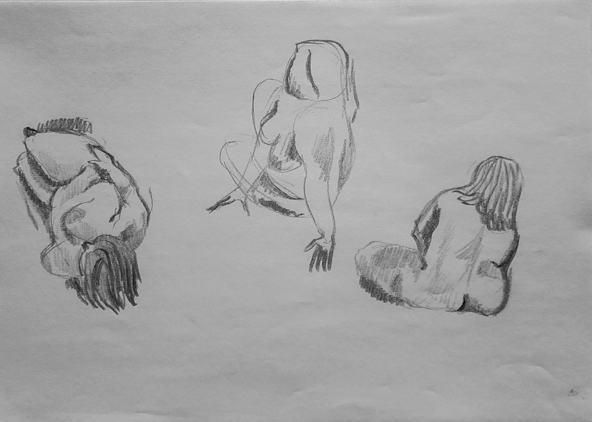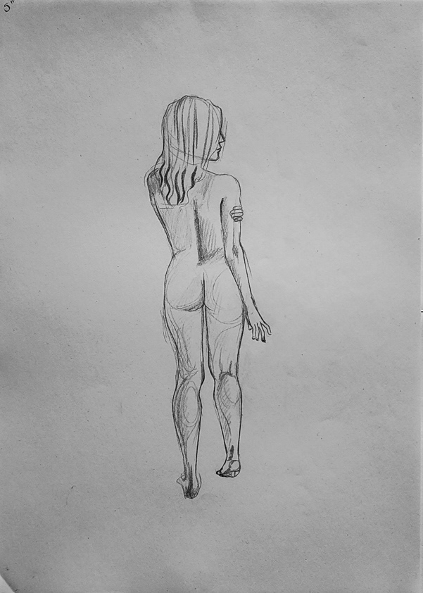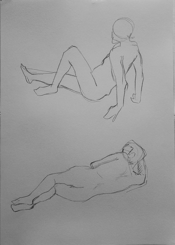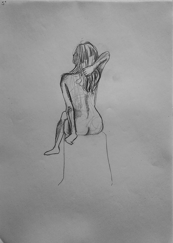 During figure drawing sessions, students drew models from life, starting with 15-minute intervals and gradually decreasing to 1-minute intervals.