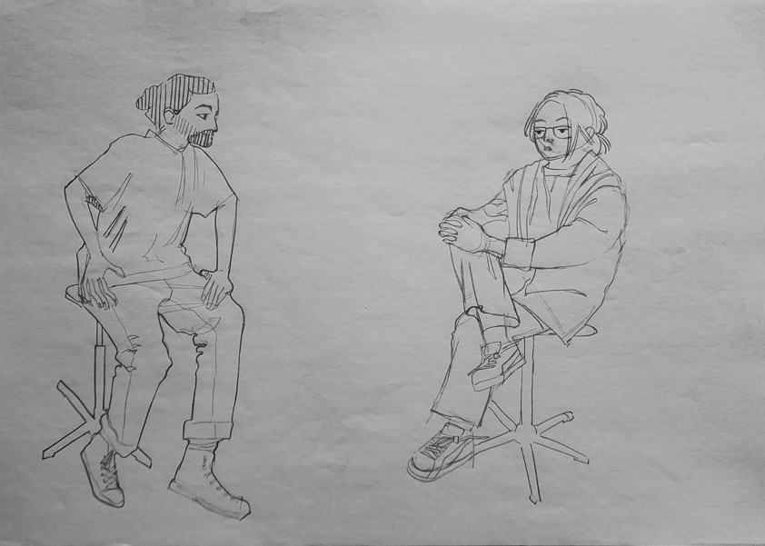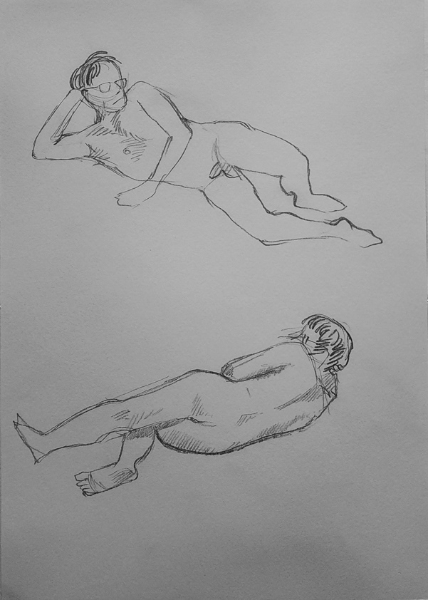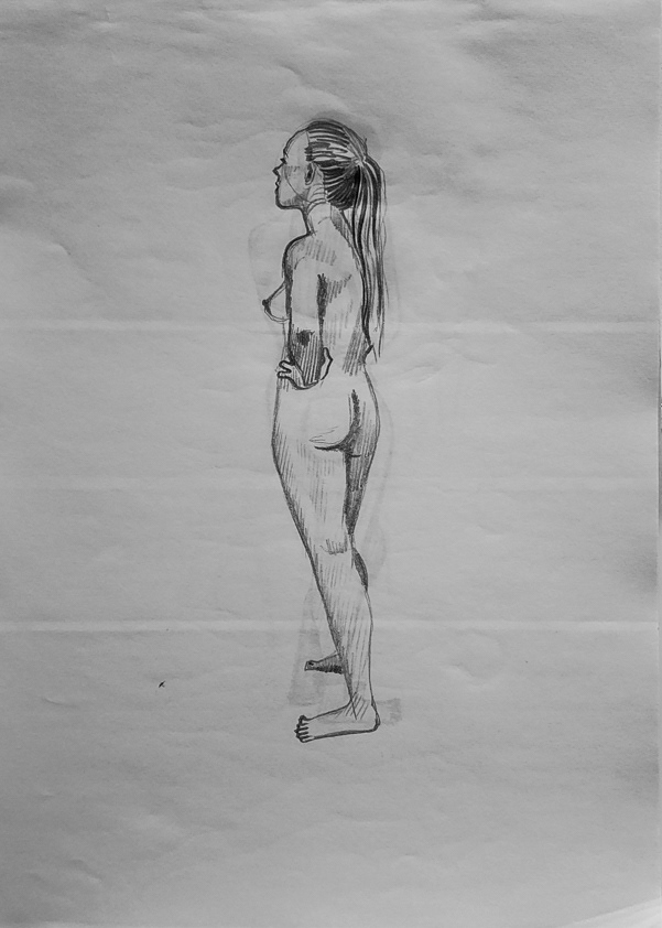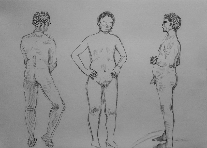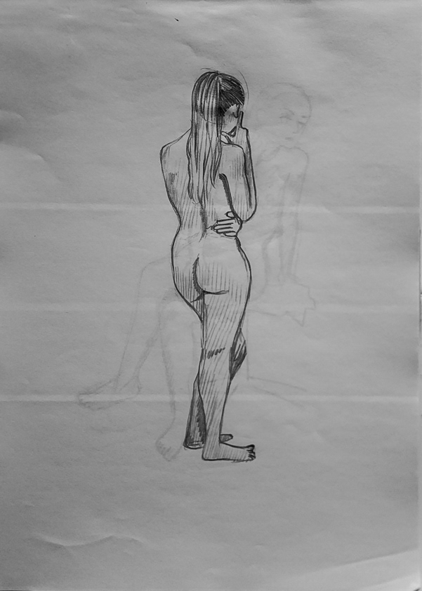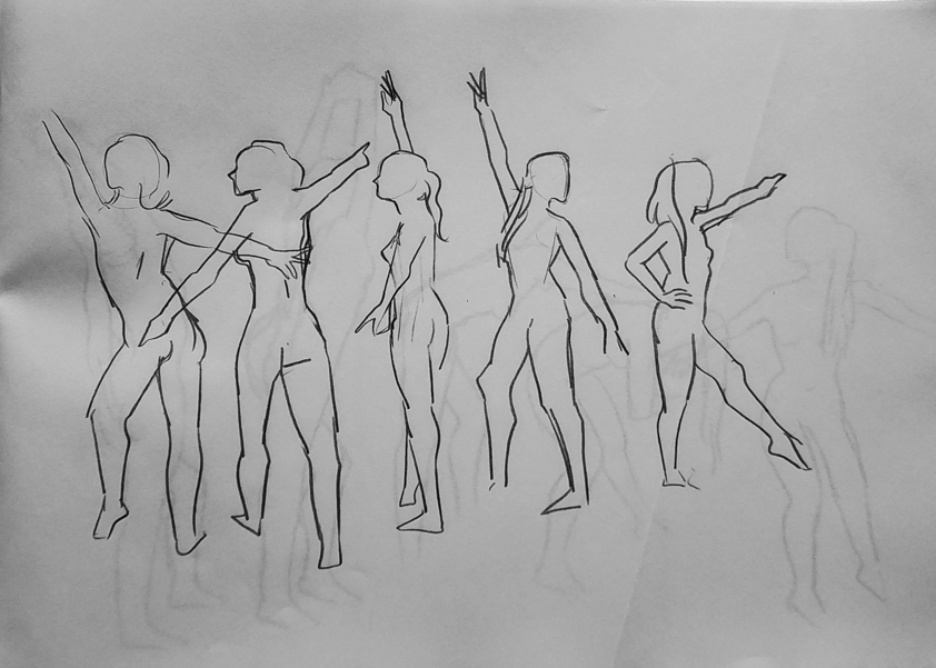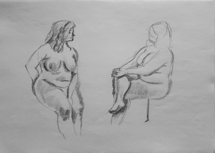 During figure drawing sessions, students drew models from life, starting with 15-minute intervals and gradually decreasing to 1-minute intervals.