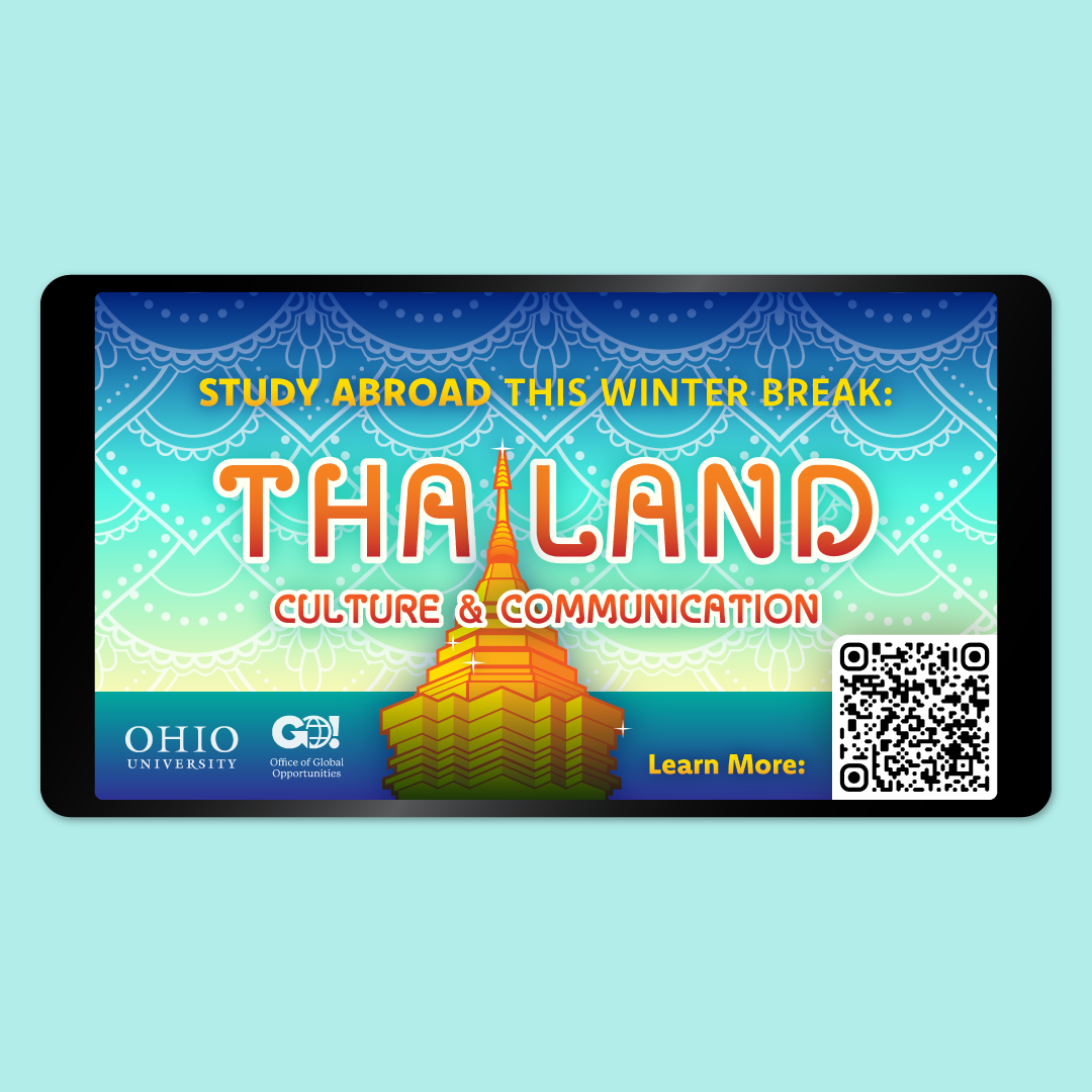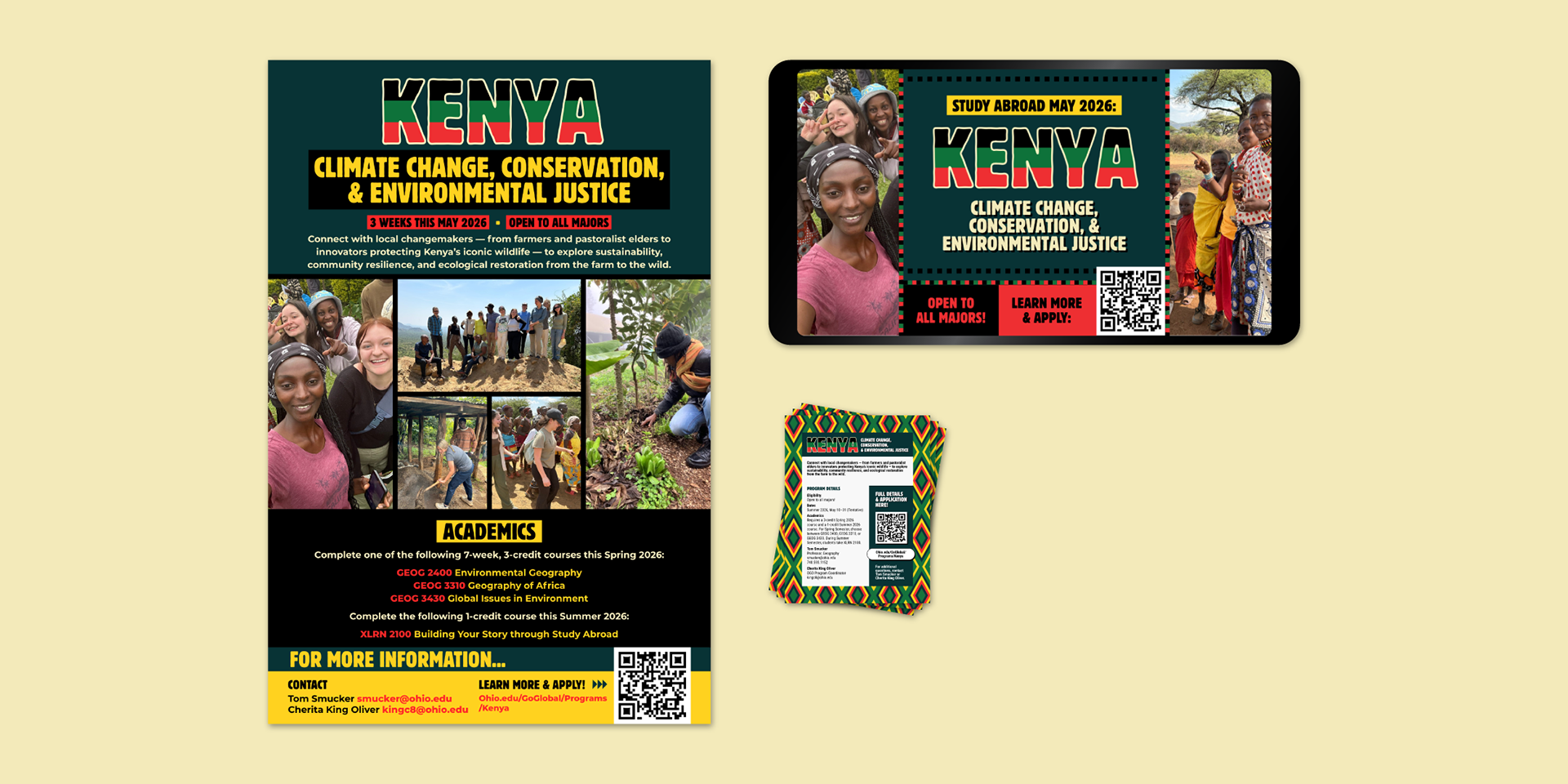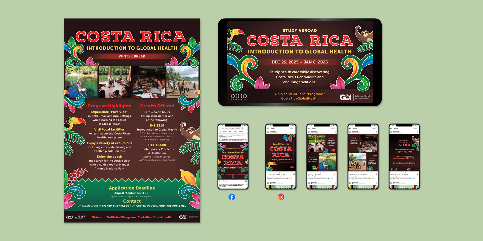 My task was to promote individual global programs across media such as large-print signage, digital displays, social media posts, posters, fliers, and small handouts. I coordinated with the clients, who provided written content and feedback on iterations.