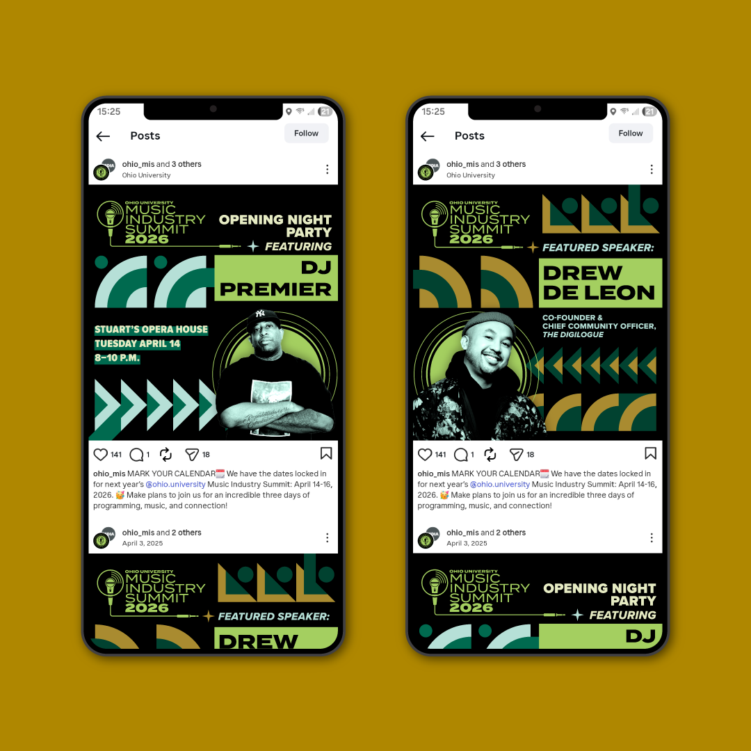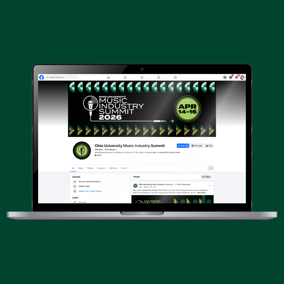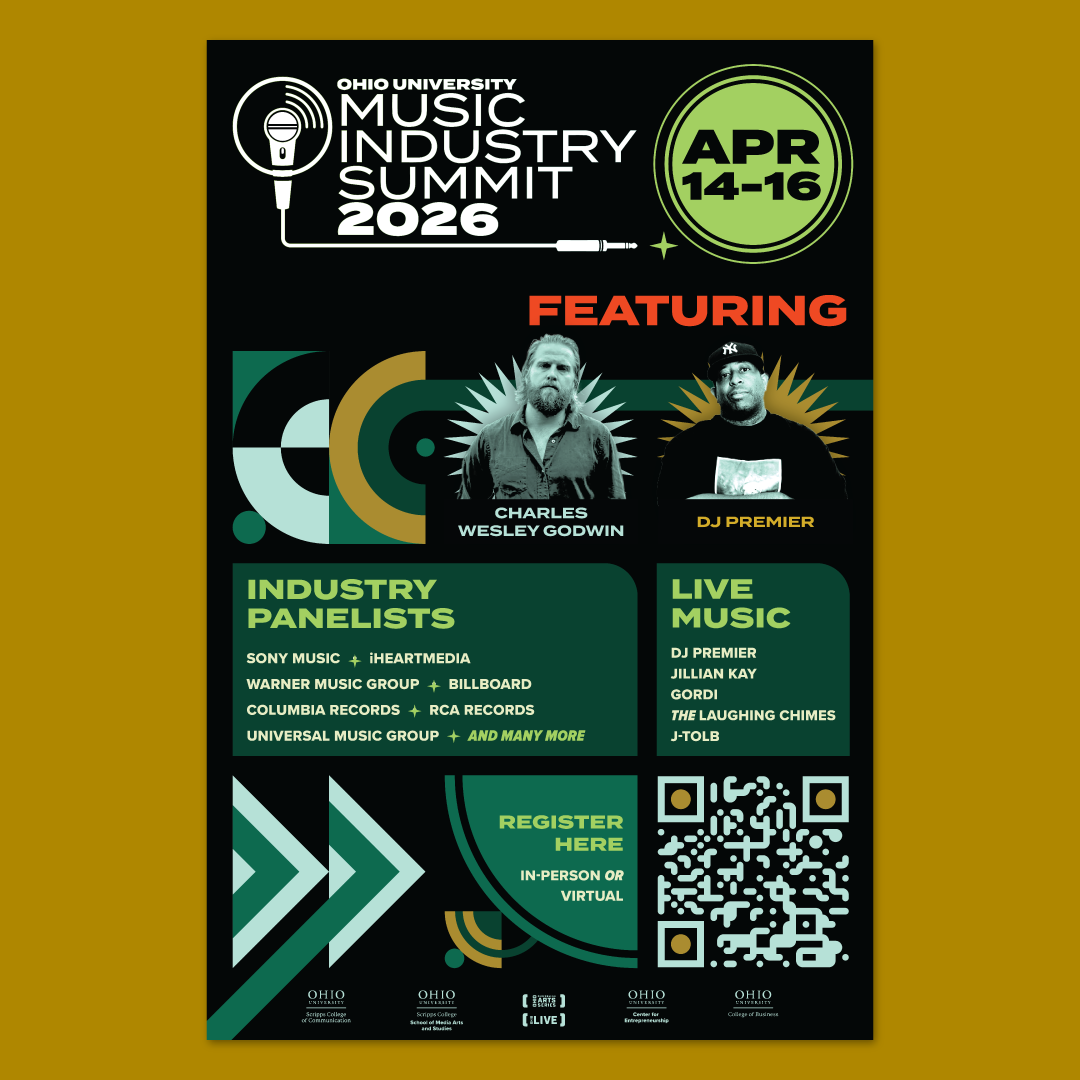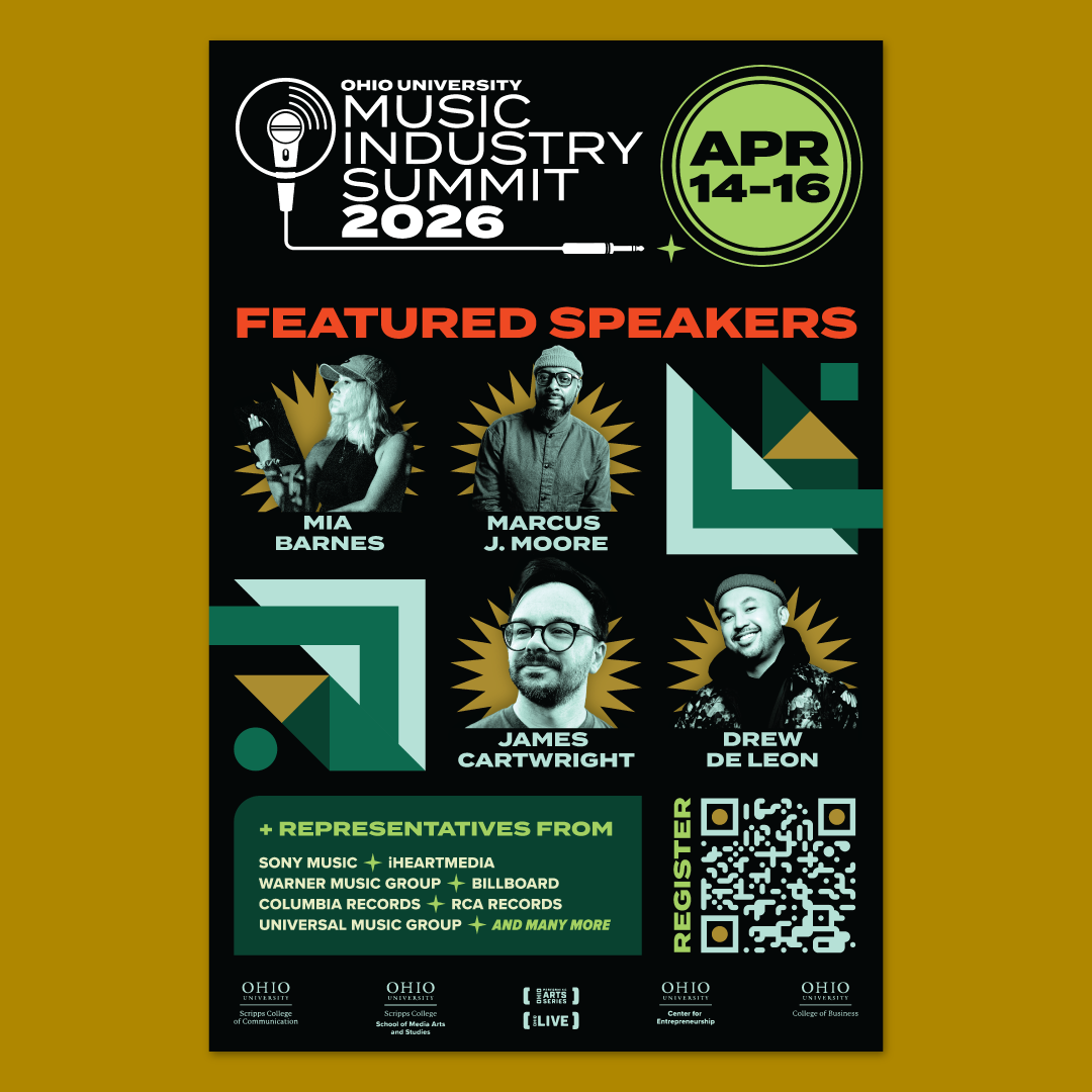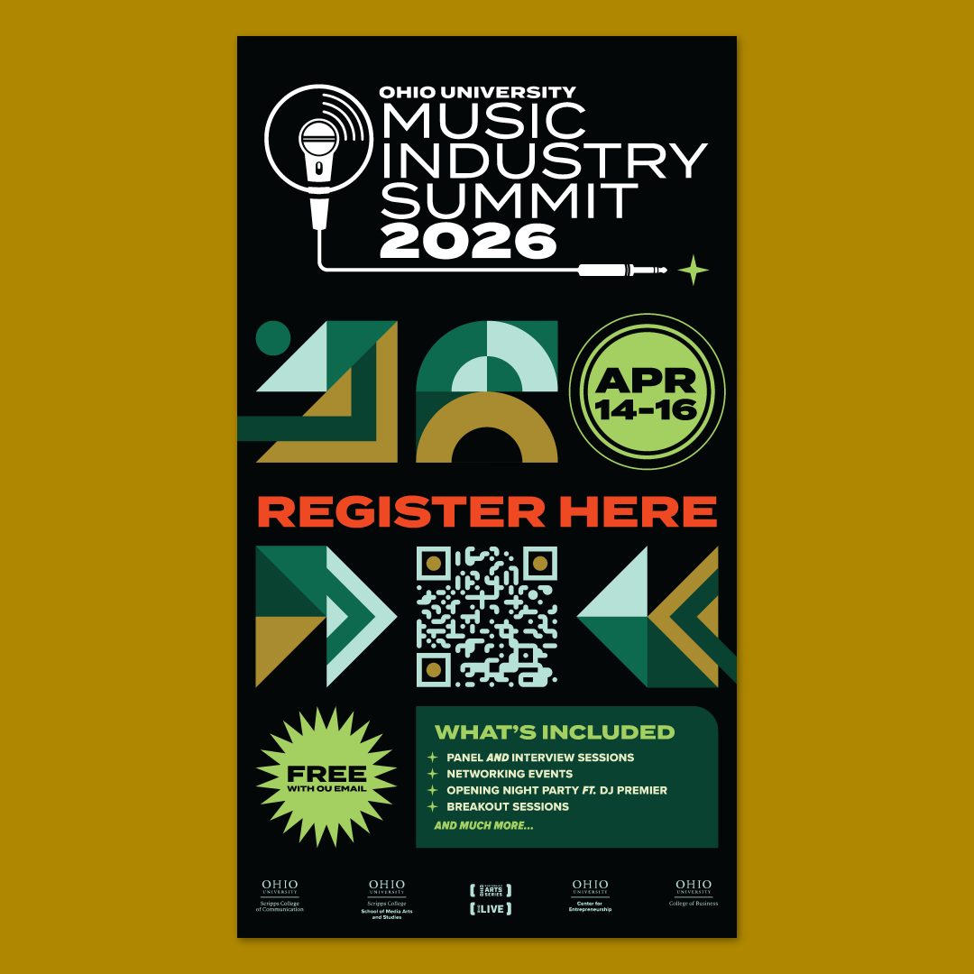 My task was to design a fresh and innovative brand treatment for 2026 that communicated the Summit's spirit of collaboration, innovation, and the convergence of thought leaders in the music industry. The brand treatment had to use Ohio University typography and colors.