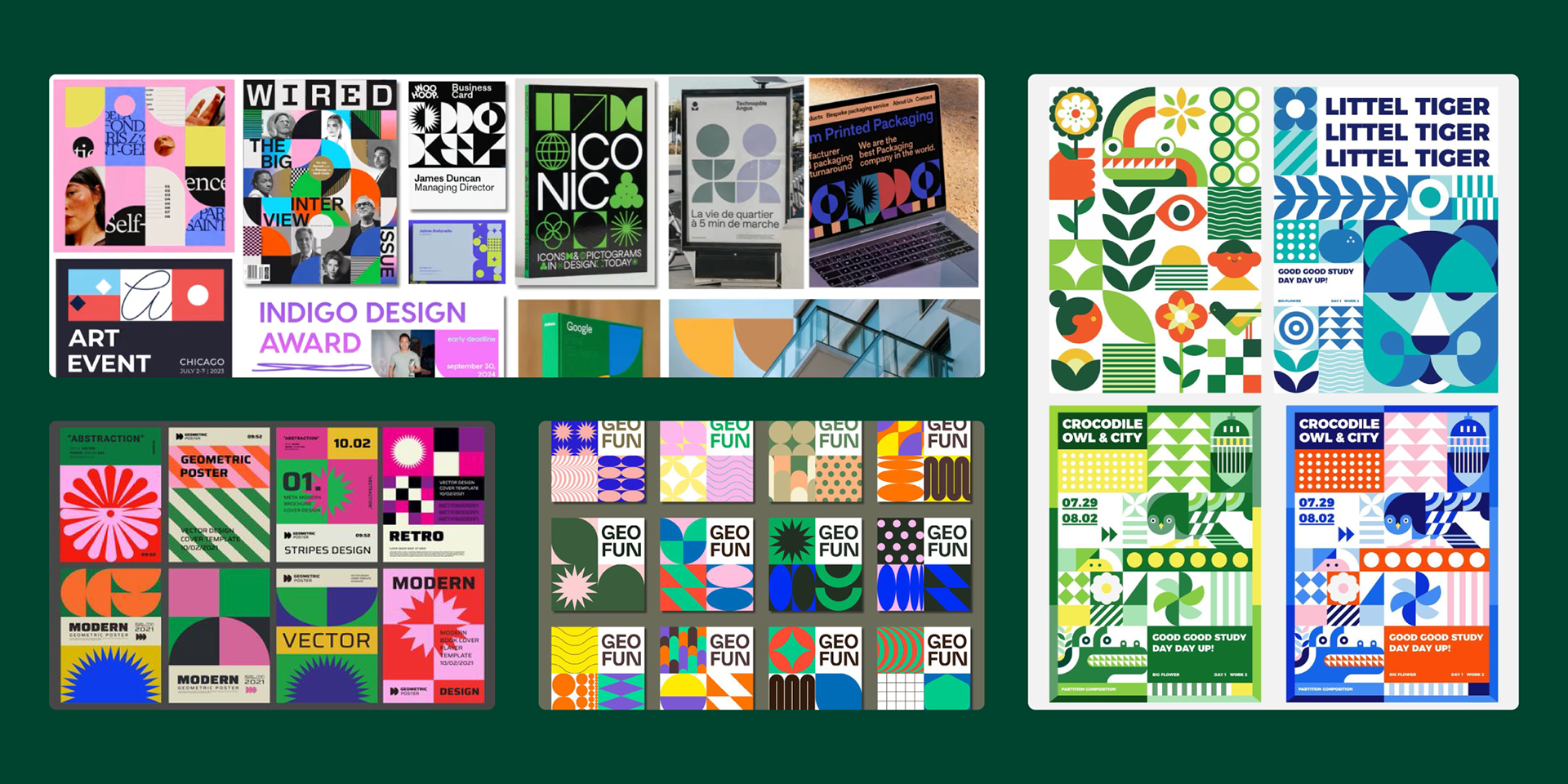 The visual language prioritizes clear communication by building around key information and integrating geometric shapes into the flow of the composition, such as the use of triangle to point toward key information.