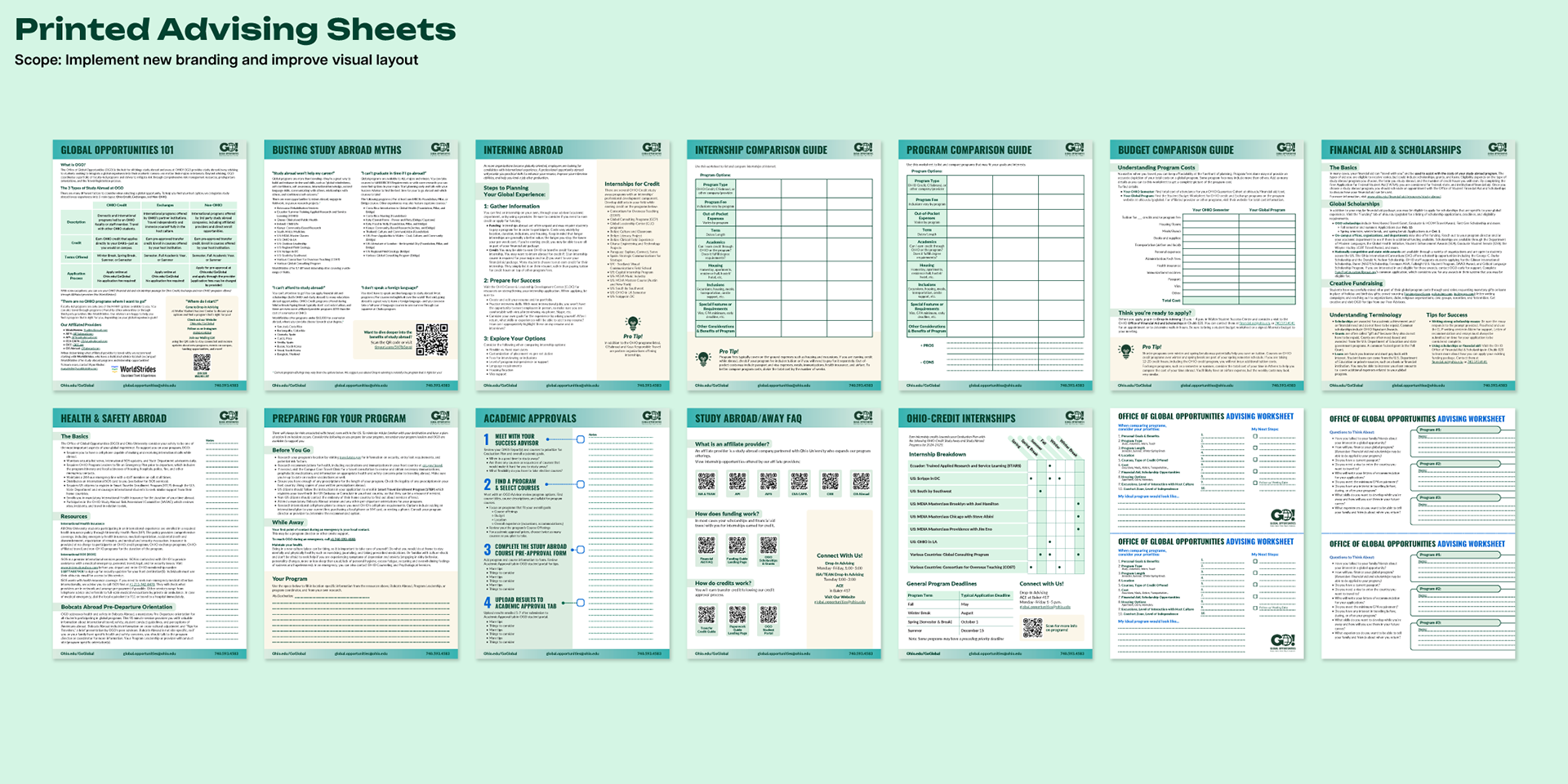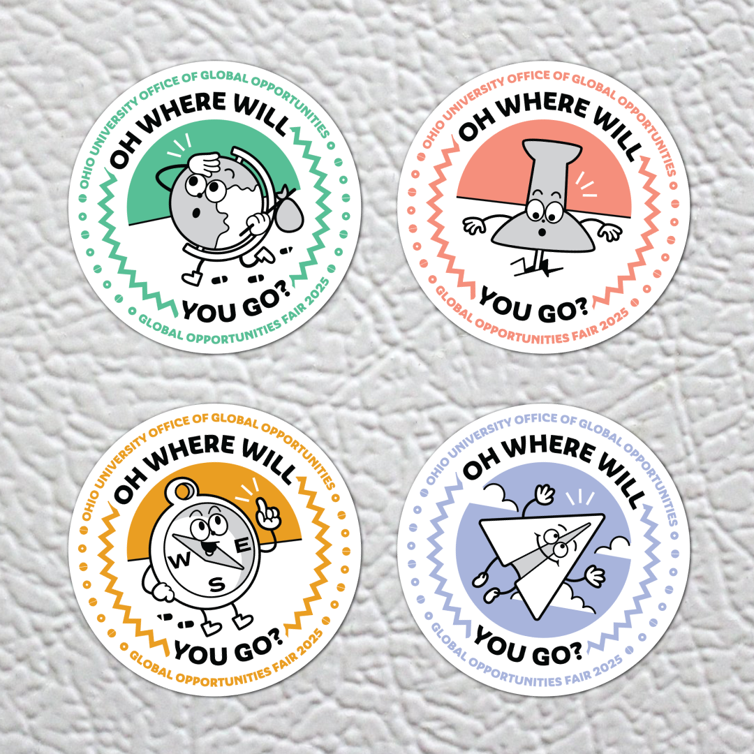 As in-house graphic designer for OGO, my role partly entailed creating materials inspiring students to study abroad and directing them to relevant events or touchpoints. The materials had to remain accessible for a diverse student body and pair well when adjacent to Ohio University's brand style.