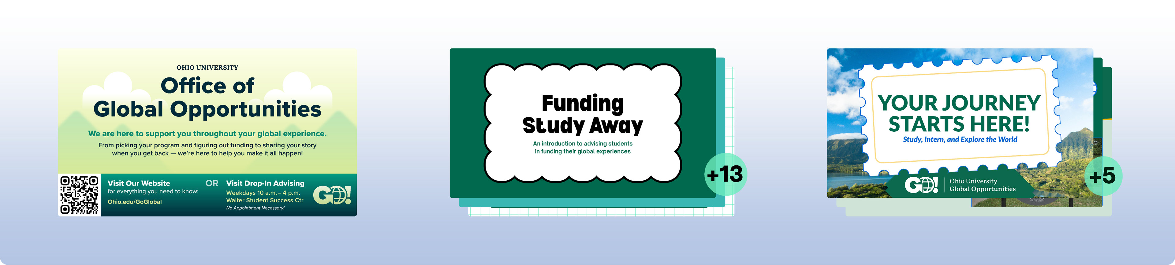 As the in-house graphic designer for OGO, I provided diverse materials that promoted the office's services or otherwise delivered practical information to students in a clear, engaging way.