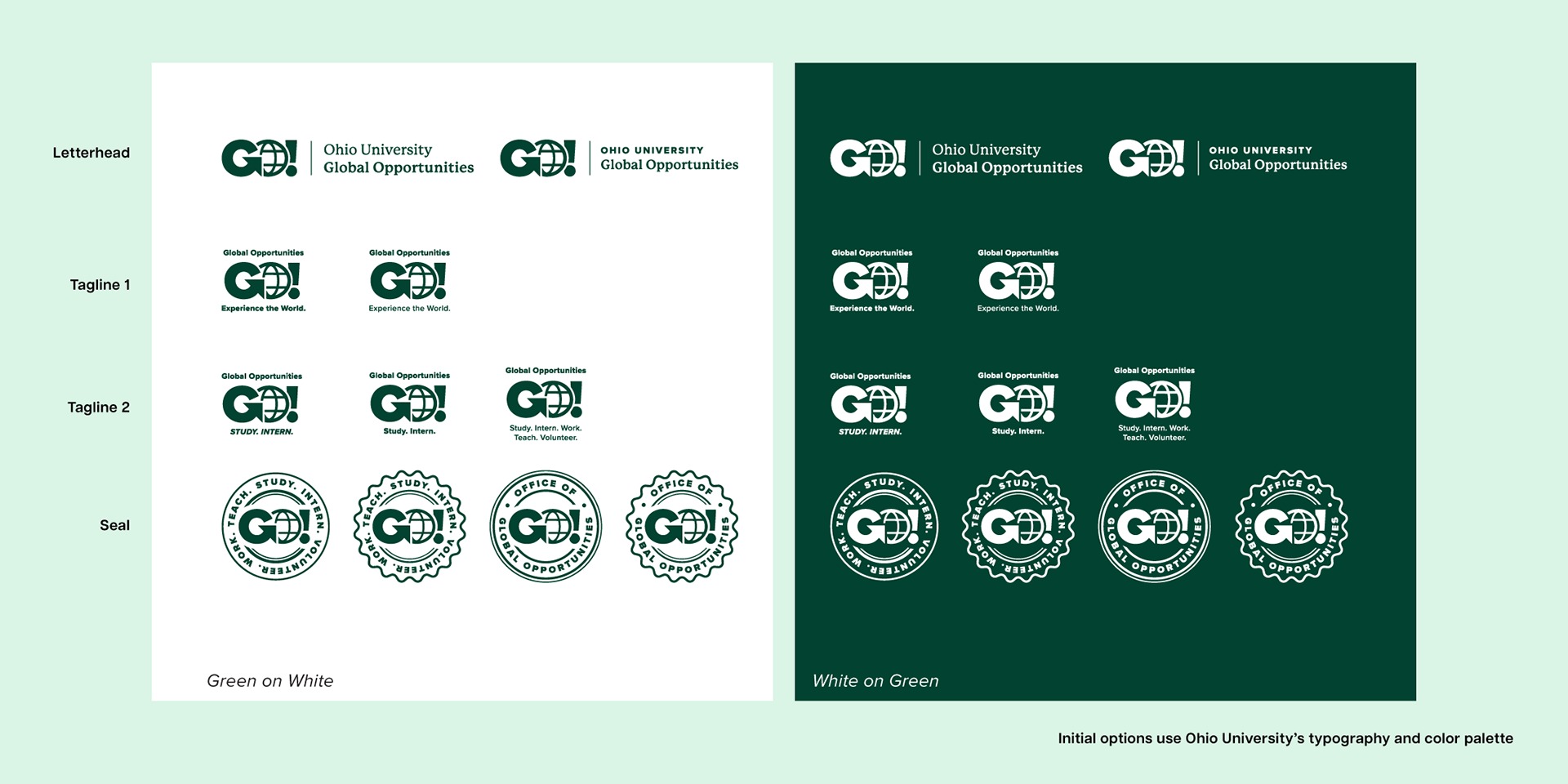 After pitching 16 logomark options to the team and explaining the value a new logo would bring, I received approval to continue the process. We collected stakeholder feedback, compiled results, and received final approval from Ohio University's marketing department.