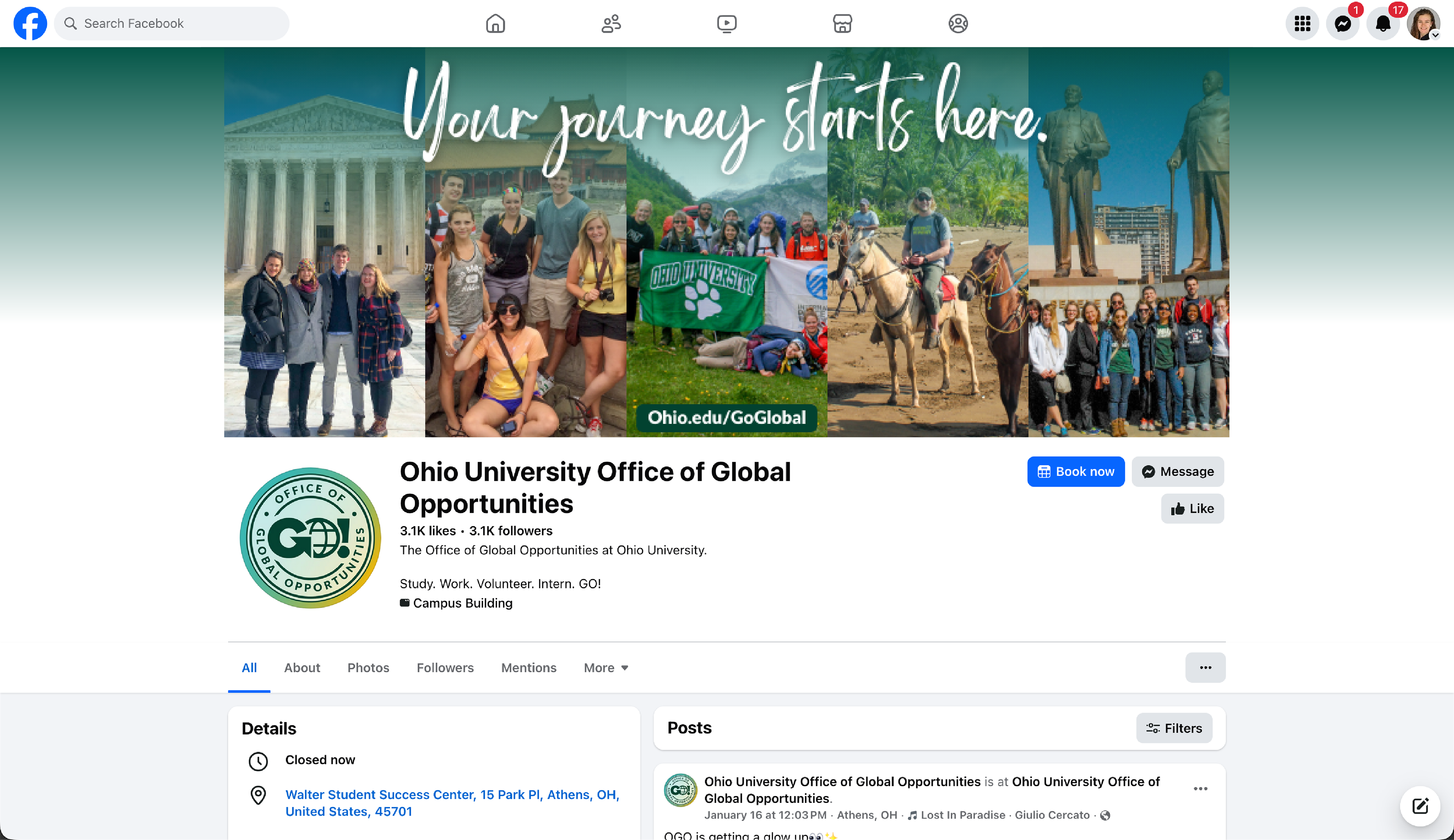 The Office of Global Opportunities (OGO) serves as Ohio University's study abroad department, coordinating with program directors to offer students diverse opportunities as well as providing advising serves along every stage of the study abroad process.