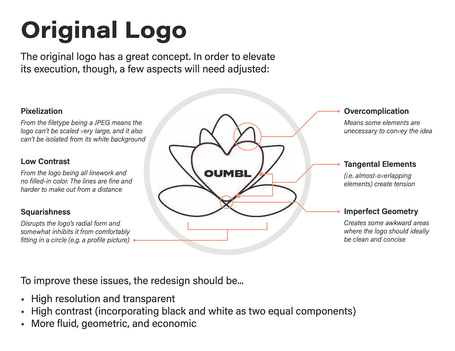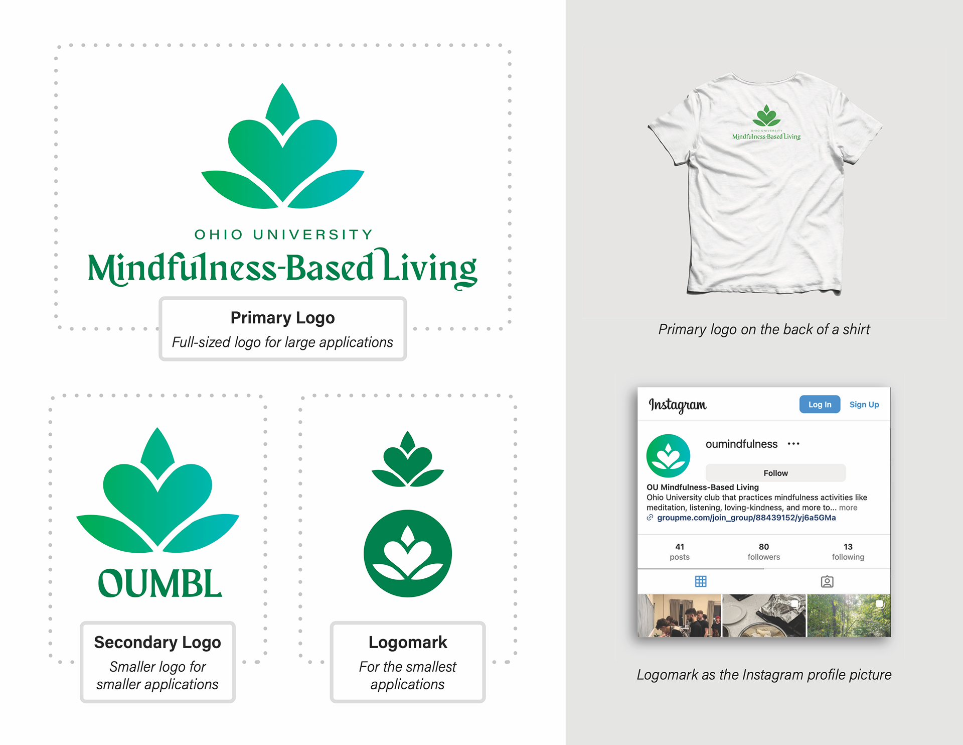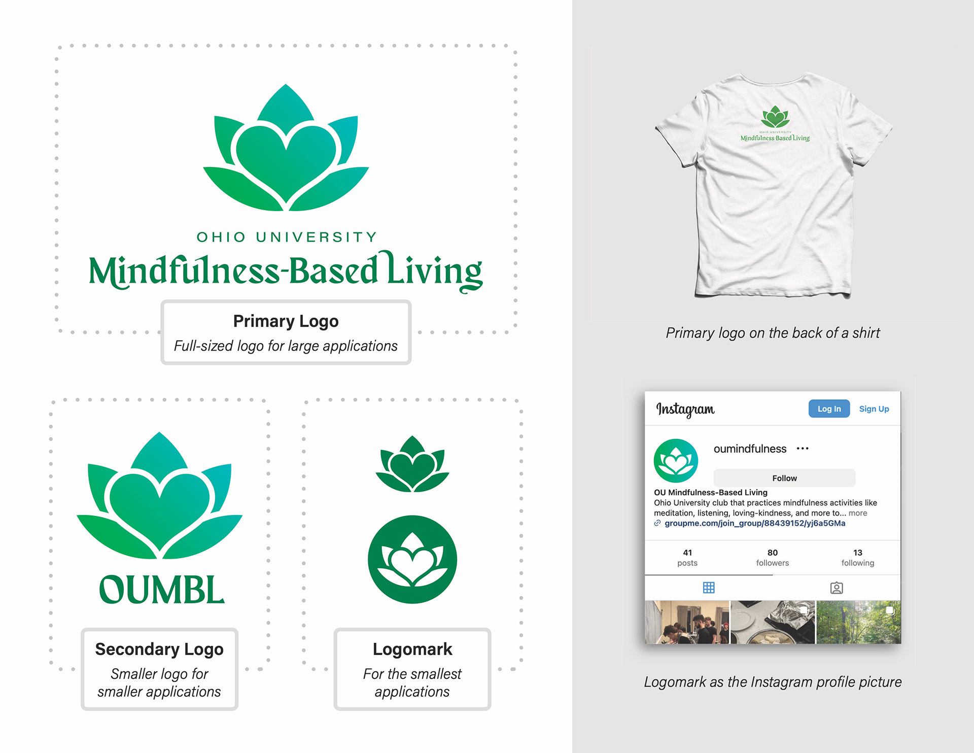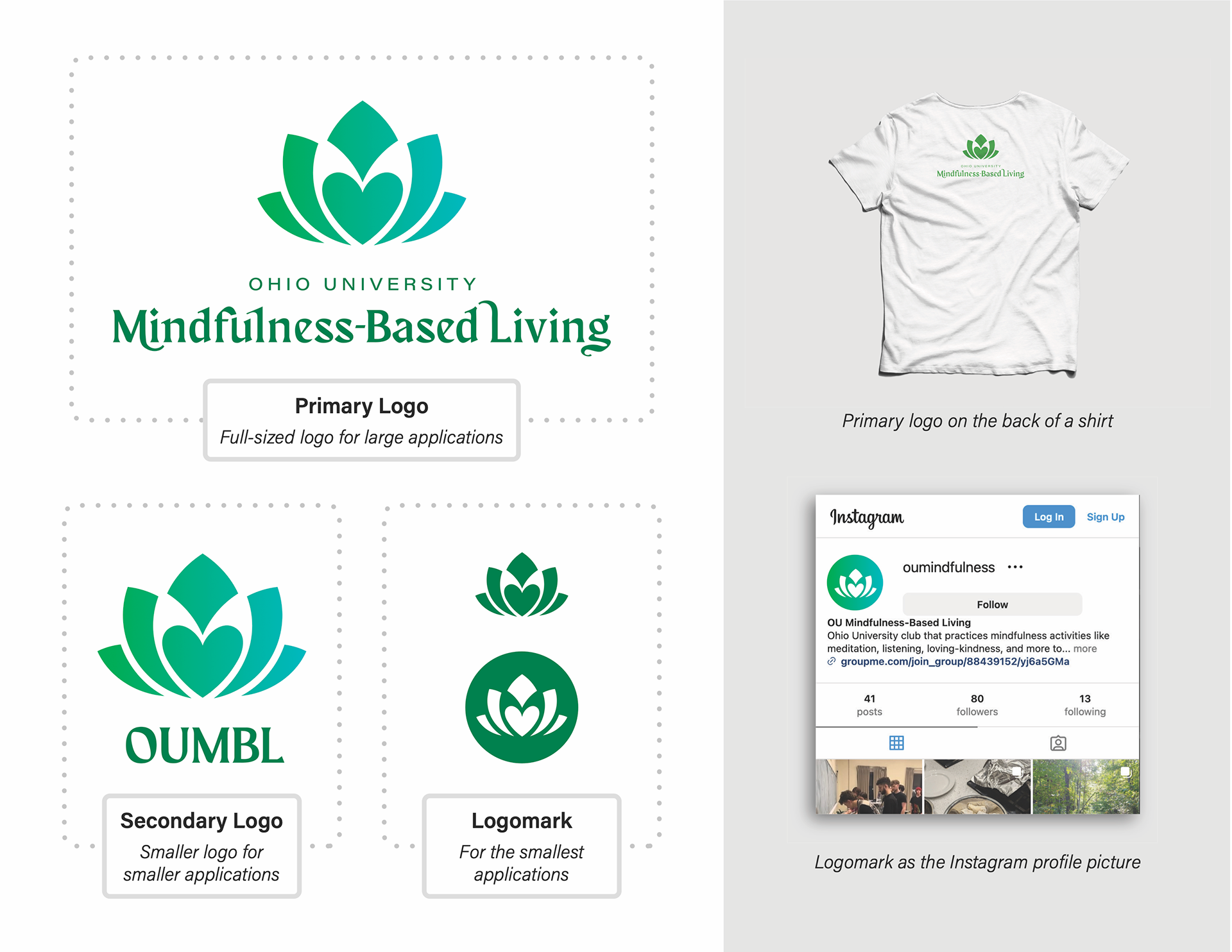 Ohio University Mindfulness-Based Living (OUMBL) was founded in 2023, and since then, they have wanted to increase their brand awareness. This prompted me to propose a redesign for their logo that more strongly adheres to design conventions.