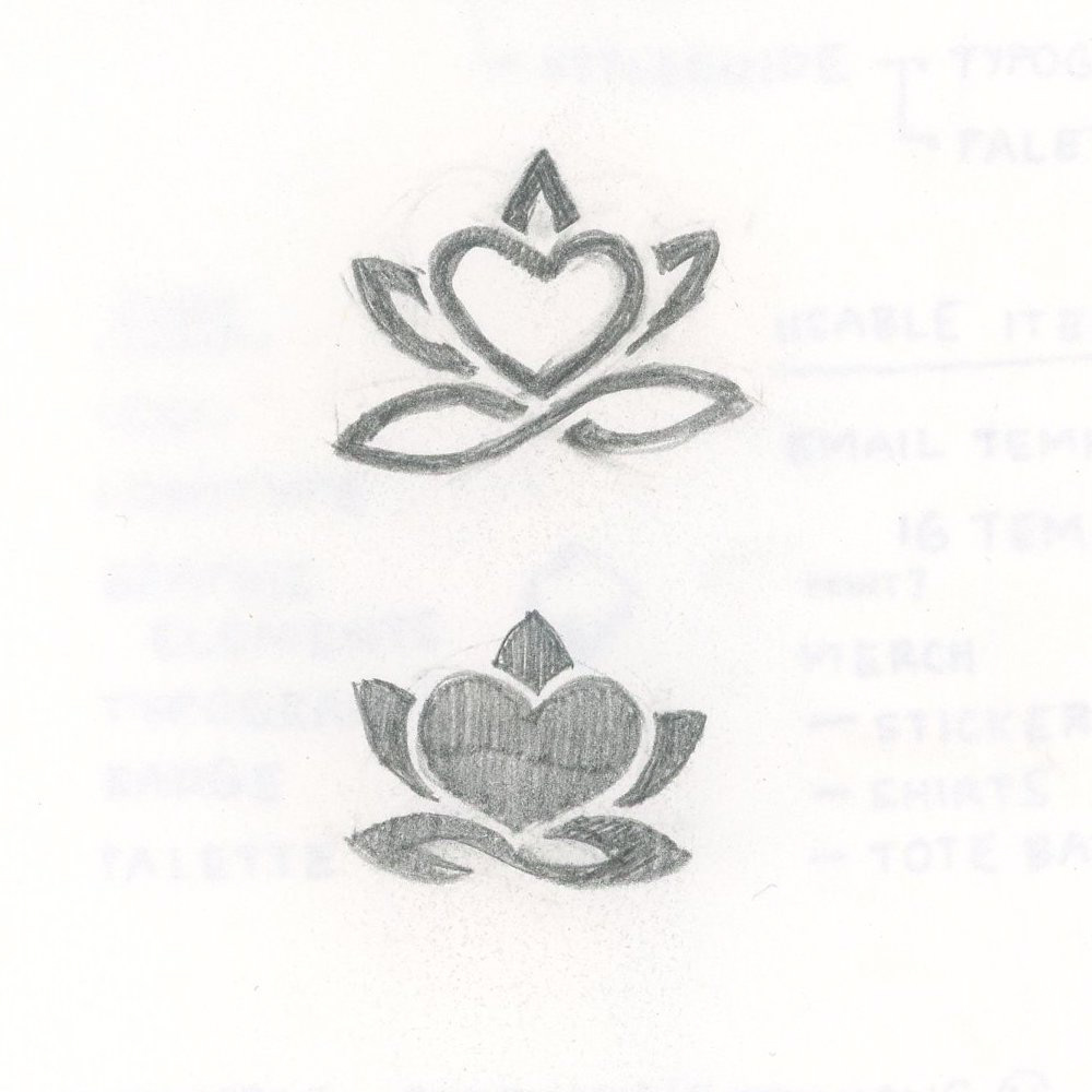 During consultation, the client shared a key insight with me. He pointed out that the bottom leaves of the original logo represent both an infinite symbol and the crossed legs of a meditator. Not wanting to strip the original logo of its clever meanings, I returned to sketching.