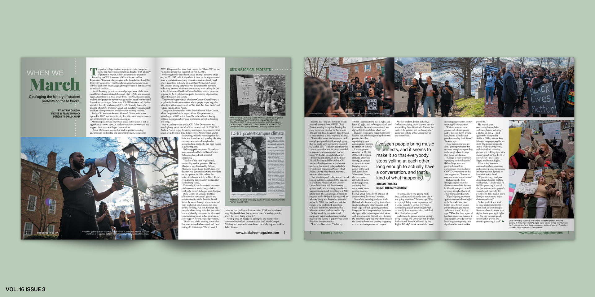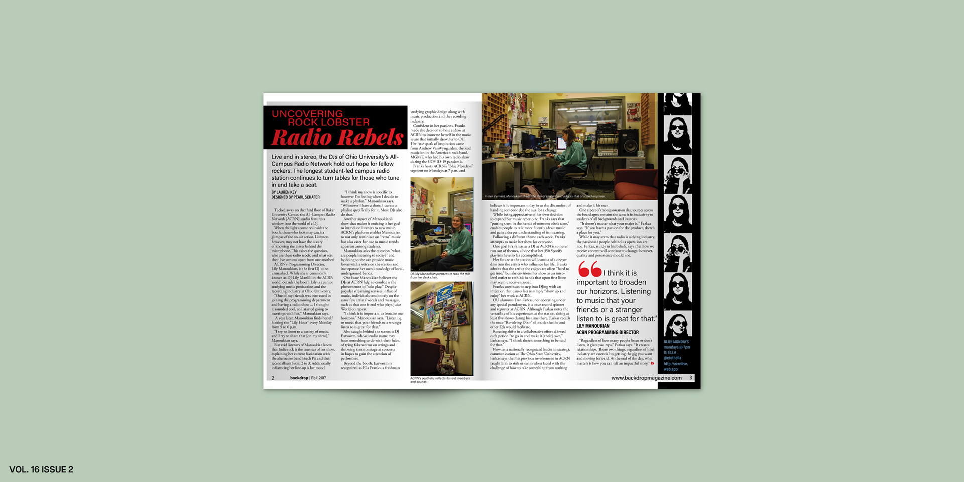 Backdrop Magazine is a student publication at Ohio University that strives to disseminate the most salient and impactful news on campus. The staff consists of student journalists, photographers, and publication designers.