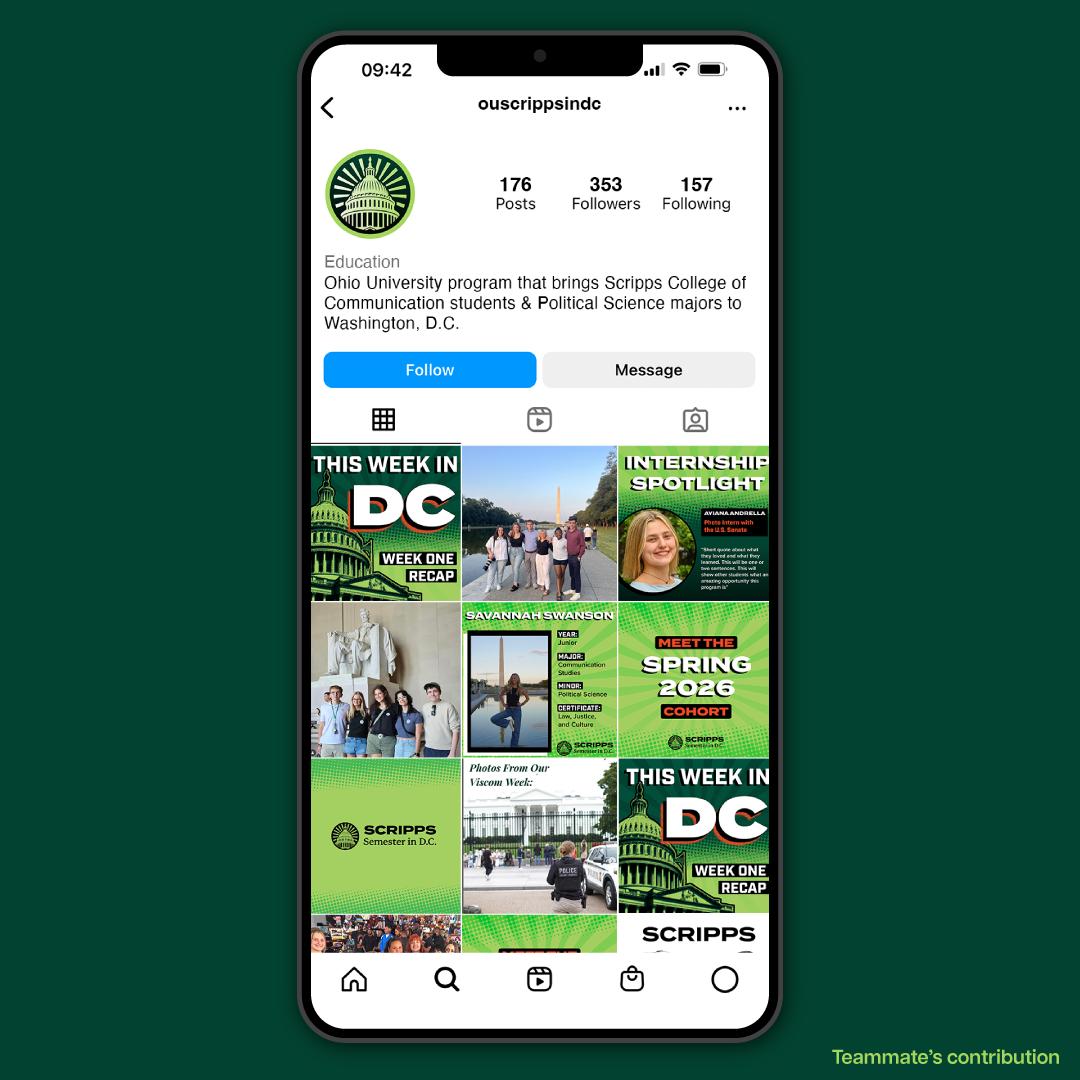The Scripps Semester in D.C. Program (SiDC) is an immersive study-away experience where upper-level students spend four weeks in academic seminars followed by a 10-week full-time internship in Washington, D.C. Students gain professional experience in journalism, strategic communication, photography, design, UX, and data visualization while networking with media, government, and nonprofit professionals.