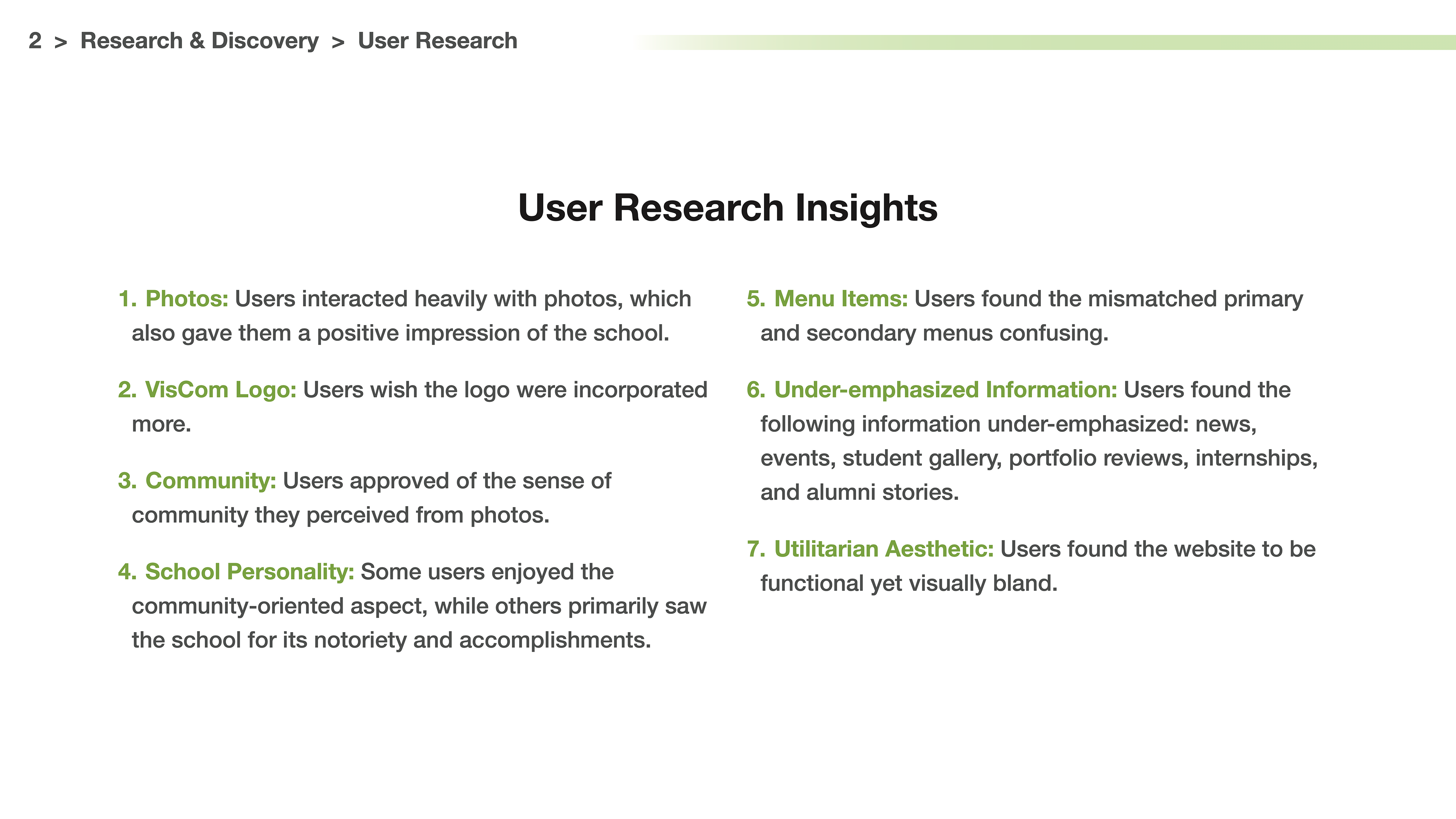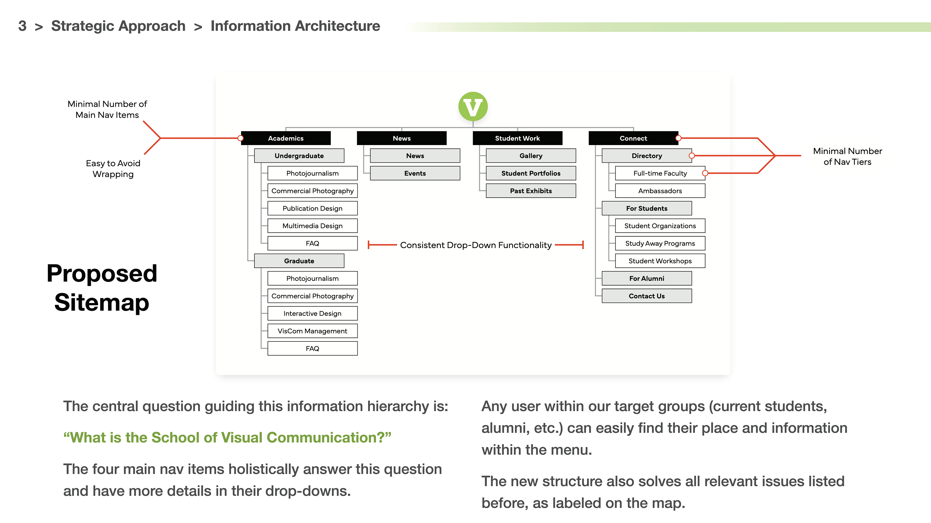 I proposed a sitemap that more intuitively tells the story of the school and addresses the issues users faced.