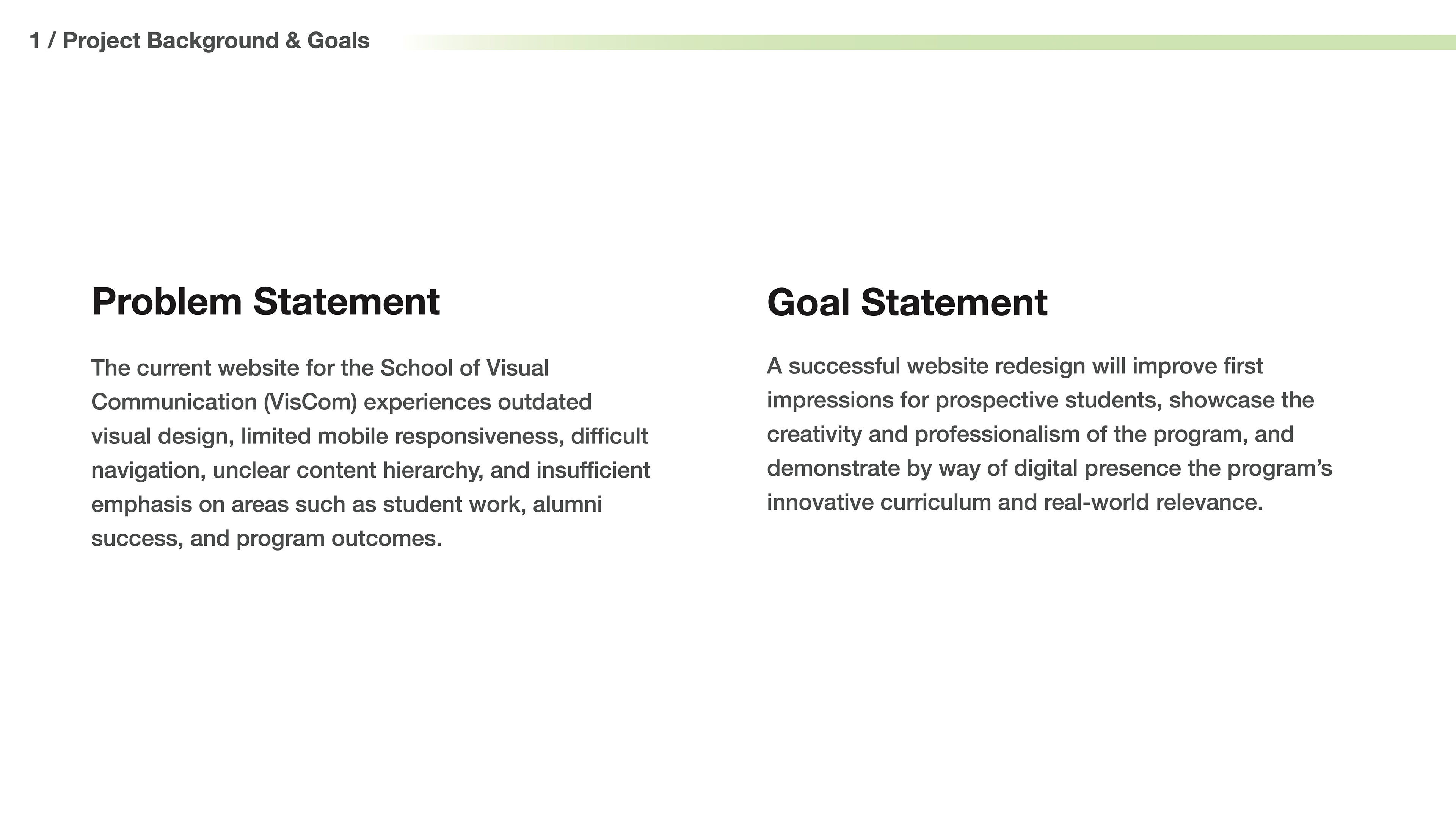 The client requested an improvement to dated aesthetics and limited interactivity, hoping to reinforce their image as a reputable school of design, media, and journalism.